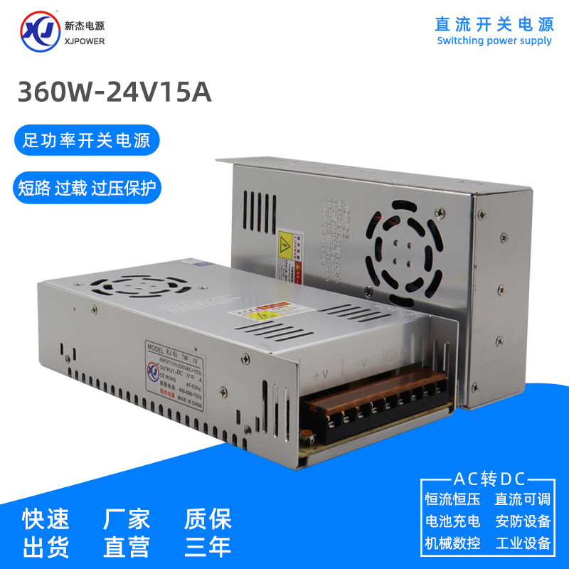 新杰 AC220V转DC24V15A 360W直流稳压开关电源模块 LED显示屏 柜台灯 灯带 开窗机 电机 工业设备 24伏变压器 S-360W-24V switching power supply